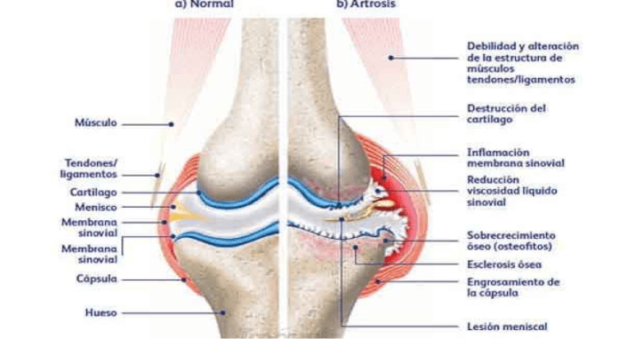 - Obesidad: incide en las articulaciones de carga como rodillas y caderas. El sobrepeso aumenta la presión de la articulación e induce a la degeneración del cartílago.