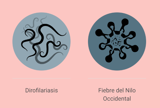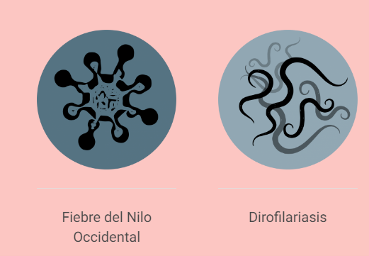 El mosquito también puede transmitir la dirofilariasis canina, también denominada como el “gusano del corazón”, una enfermedad provocada por nematodos parásitos. El parásito afecta principalmente a perros y otros cánidos, como lobos, zorros y coyotes. Aunque también puede llegar a afectar a los humanos, las probabilidades de que esto ocurra son muy bajas.